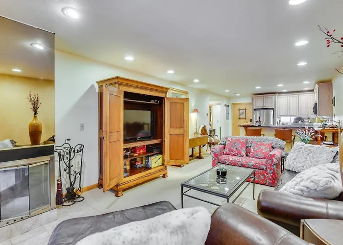 Nestled in the Vail Village district, the 100 m² Condo Near Golf Club About 2 Mi To Vail Ski Resort! is approximately 2 km from such cultural places of interest as Colorado Snowsports Museum and Hall of Fame. Located within walking distance of Vail Golf Club, the 2-bedroom apartment offers an outdoor pool, a Jacuzzi.